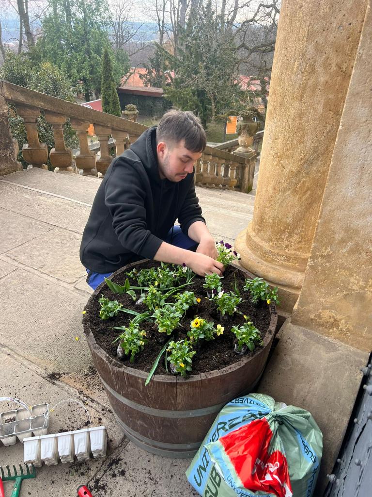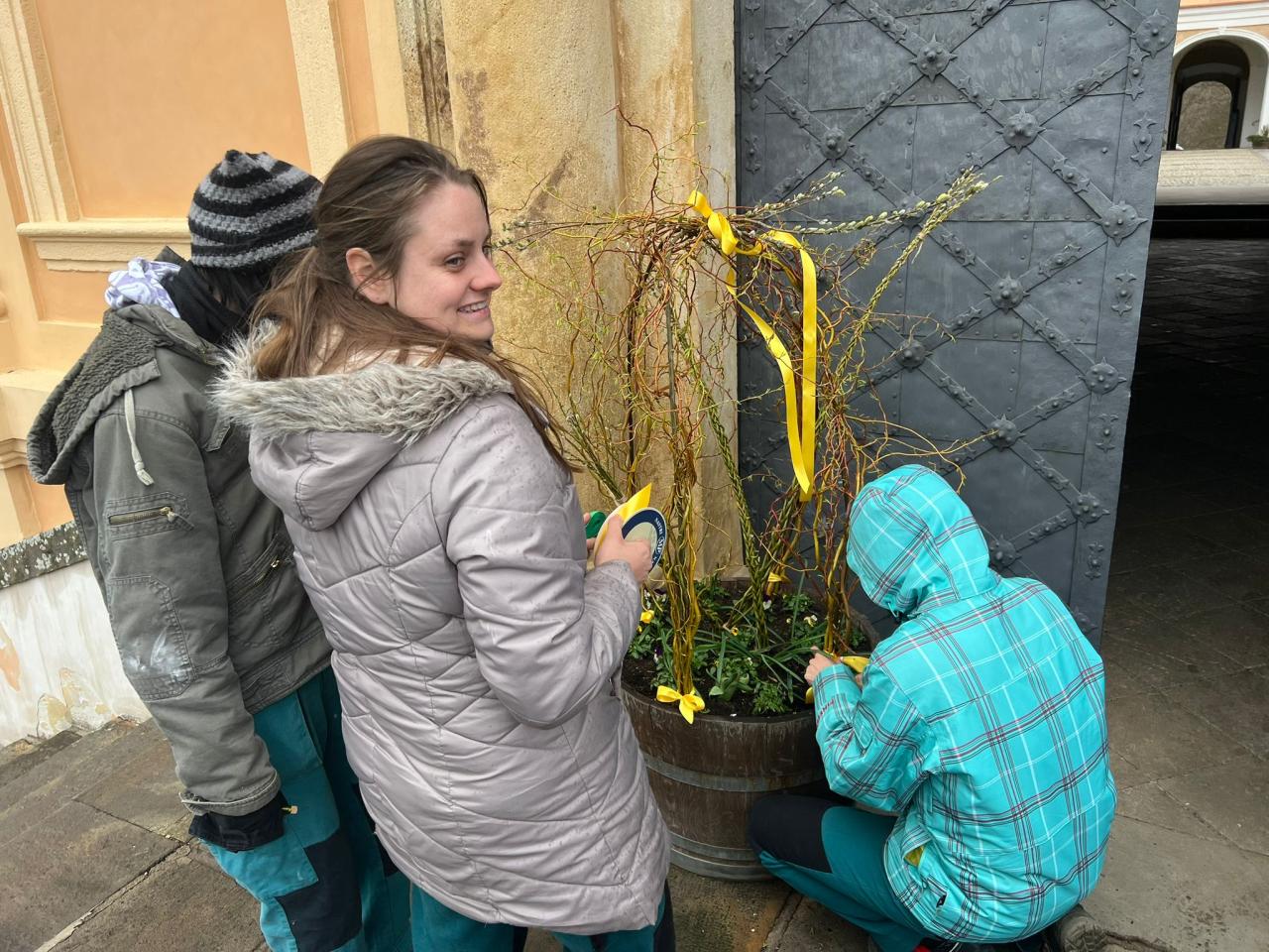 Učni zahradnického oboru ze střediska Jirkov (SŠ TGA Chomutov) se pustili do tvorby jarní výzdoby a zámek už pomalu ožívá svěží jarní atmosférou.