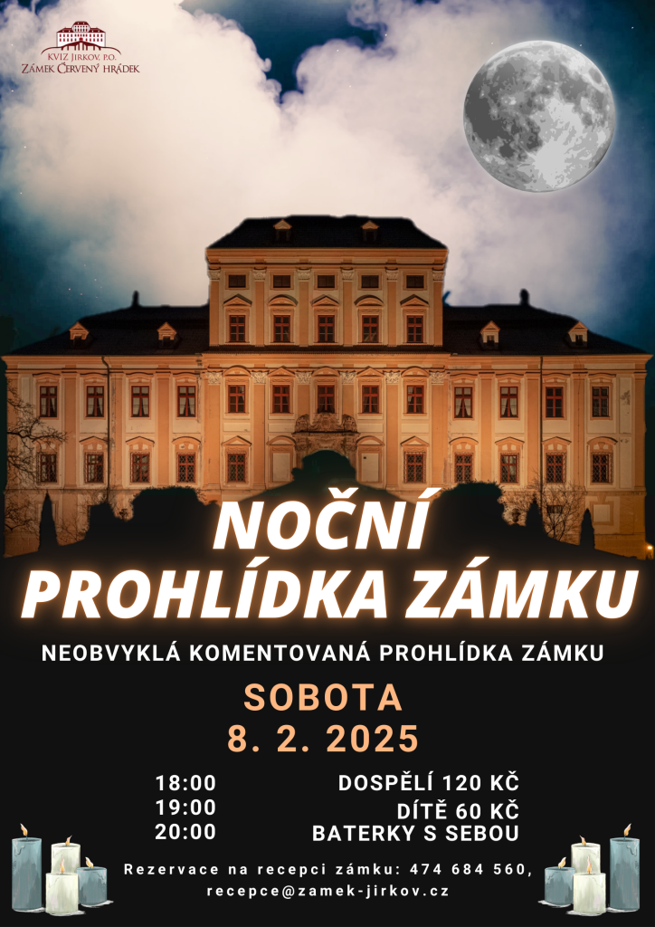 Rezervace: Rezervace na recepci zámku 474 684 560, recepce@zamek-jirkov.cz